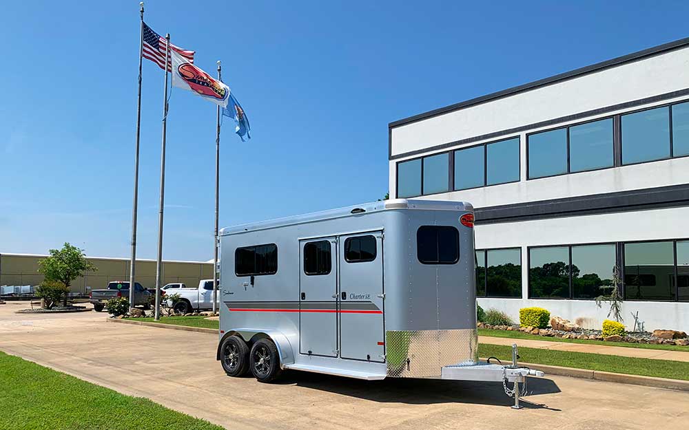 The Charter TR SE Bumper Pull is a 2 horse straight load trailer which has a large front tack room.