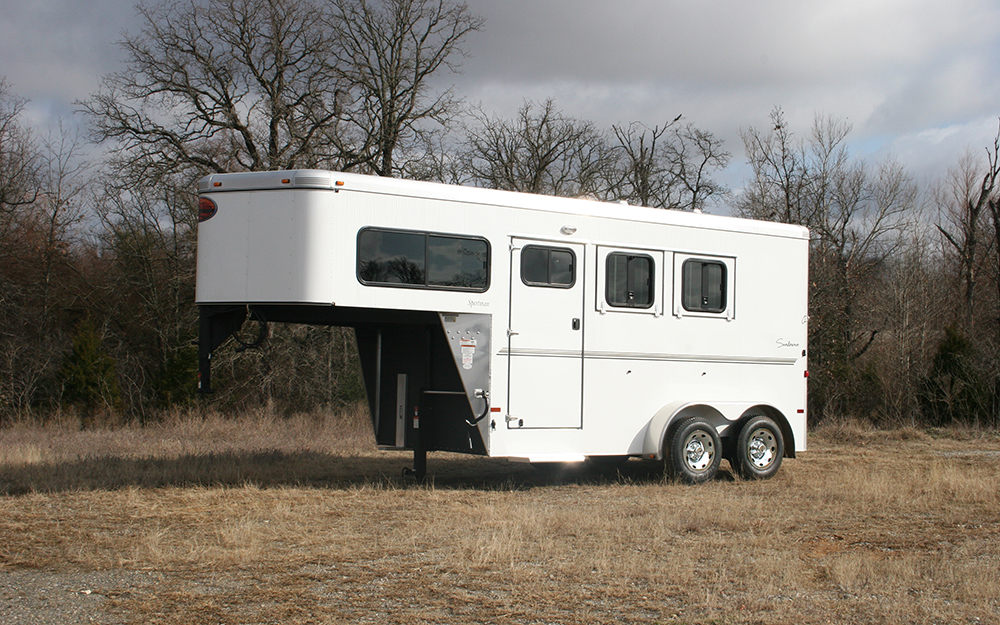 The Sportman is an all aluminum trailer that is built with today’s budget conscious buyer in mind. The slant load gooseneck trailer is available in 2 to 4 horse models. It has drop down feed doors on the head side and is fully enclosed with a huge 18″ x 64″ window that drops down on the rump side for increased air flow. This trailer has a rear tack with a swing out saddle rack and a tack room. The Sundowner Sportman is built with the same quality and standards that people expect from a Sundowner trailer.
